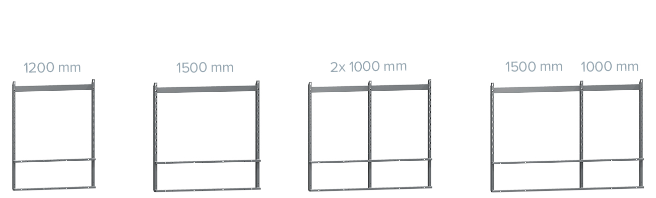 Der Hauptbaustein ist die Aufbaukonstruktion, die wir in vier Breiten anbieten - 1200, 1500, 2000 und 2500 mm.