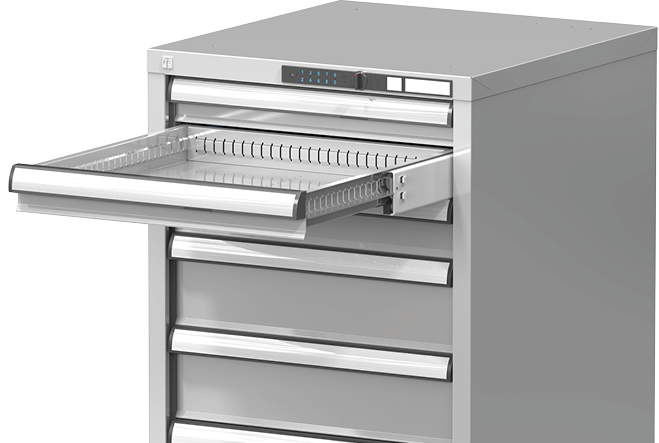 Die Schubladen der mobilen Container sollten stets mit einer Sicherung versehen sein, die das unbeabsichtigte Öffnen der Schublade verhindern.